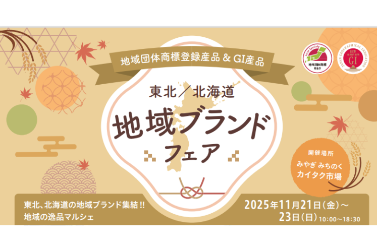 東北経済産業局は北海道経済産業局と共催で、地域団体商標制度のさらなる普及を図るため、東北・北海道地域の「地域団体商標登録産品」、東北地域の「地理的表示(GI)産品」をPRする販売イベントを、11月21日~23日にみやぎ・みちのくカイタク市場(仙台市青葉区)で開催する。