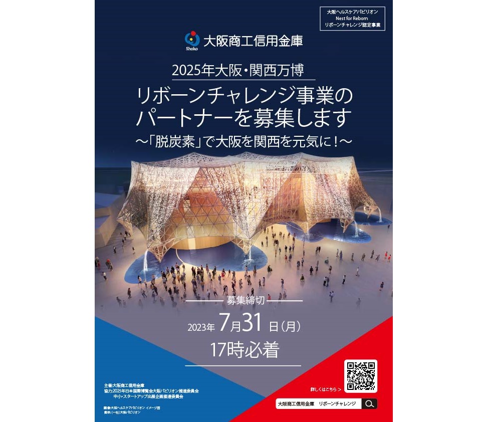 大阪商工信用金庫は、2025年に開催される大阪・関西万博に出展するパートナーを募集している。同万博への参加を目指す中小・スタートアップ企業を支援する「リボーンチャレンジ事業」の一環で、脱炭素をテーマにしている。出展料は10万円(税抜き)。締め切りは7月31日。