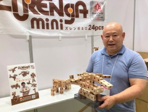 会場では、先ごろ発表された「日本おもちゃ大賞2023」受賞商品を展示。このうち知育・教育・教科学習に役立つ玩具を対象とした「エデュケーショナル・トイ部門」では、木製の玩具や日用品を製造する株式会社浅尾(滋賀県長浜市)の「天然木製ブロック ズレンガmini24pcs」(1万5840円)が優秀賞を受賞した。2種類のパーツのみで子どもたちが考えながら組み立て遊びができる商品で、国産のスギ材を使用しているにもかかわらず、乾燥・加工技術で湿度などによる寸法変化を抑えている点が評価された。同社の浅尾年彦代表取締役は「名だたる大手メーカーの商品にまじって、私を含めて4人だけという小さな会社の商品を選んでいただき、大変うれしい。子どもたちには、木の手触りを感じながら、自由な発想でいろいろなものを組み立ててほしい」と話している。