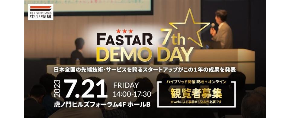 中小機構は、ベンチャー企業の成長加速化を支援するプログラム「FASTAR」のピッチイベント「FASTAR 7th Demo Day」を7月21日、東京都港区の虎ノ門ヒルズフォーラムで開催する。観覧者を募集している。