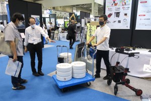 RT.ワークス株式会社(大阪市東成区)は、高齢者の歩行を助ける「ロボットアシストウオーカー」で培った、車輪駆動モーターやアシスト制御ユニットを応用し、重量物を搬送する台車にアシスト機能を持たせた商品を展示した。上り坂では人間の押す力をアシストし、下り坂では自動的にブレーキがかかり、安全で負担のない搬送が実現できるという。「これまでのロボットアシストウオーカーの実績を踏まえ、1ユニット5万円程度からという安価で提供できる。展示会にはさまざまな業種の方が来場するので、たくさんの要望を聞き、開発に役立てたい」(神品淳開発製造本部部長)と期待感を示した。