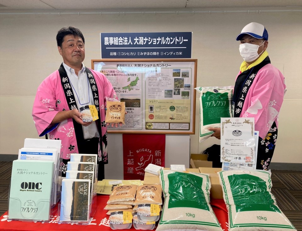 新潟県上越市の農事組合法人「大潟ナショナルカントリー」ではコシヒカリとみずほの輝き、さらにエスニック料理によく使われているインディカ米を出展。このうち2011年に品種登録されたみずほの輝きは大粒でツヤがあり、冷めてもおいしい味が変わらないのが特徴だ。同法人の竹田稔代表理事は「コロナ禍が収まったとはいえ、様々な価格が高騰するなか、生産者はみな強い危機感を持っている。こうした商談会は久々なので、私たちの米を首都圏でアピールしていき、1俵でも多く購入してもらえればと思う」と話していた。