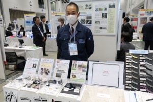 京王電化工業株式会社(東京都調布市)は、マグネシウムに無電解ニッケルメッキを施したものなど、他社が手掛けないメッキ技術を展示している。同社技術部の日吉重太氏は「自動車、半導体製造装置関連の企業からマッチングのオファーを受けている。医療向けなど新しい用途開発にも結び付けたい」と期待している。