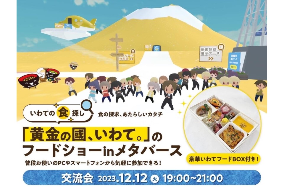 岩手県は、メタバース(仮想空間)を活用した県産食材の販路開拓・拡大の取り組み「『黄金の國、いわて。』のフードショーinメタバース」で、生産者と県内外の消費者との交流会を12月12日に開催する。参加費は3500円。