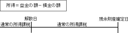 会社の解散の日の翌日より1年間を1事業年度(破産手続開始決定などによる解散の場合は定款に定めた事業年度)とみなして、2月以内に申告及び納税をしなければなりません。ただし、残余財産の確定の日を含む事業年度を除きます。この場合の所得金額の計算は、原則として解散をしていない場合の所得金額と同じです。