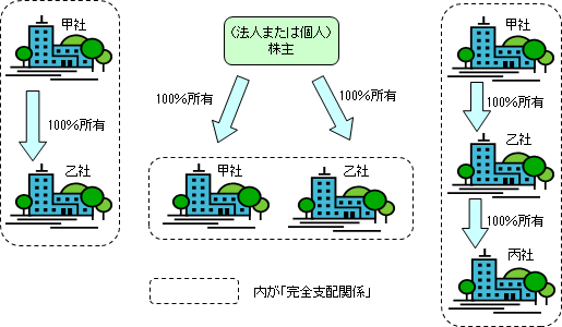 グループ法人税制の適用を受けるグループとは、100%グループすなわち完全支配関係を有するグループの法人です。