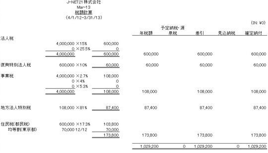 いろいろな税金が課されています。法人税と事業税は、所得(法人の利益と思って下さい、後ほど説明します)をベースに税率をかけて税額を計算します。