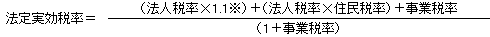 繰延税金資産(負債)は一時差異等の金額に法定実効税率を乗じることにより算出されます。法定実効税率とは以下のような事業税の損金算入の影響を考慮した算式により求められます。