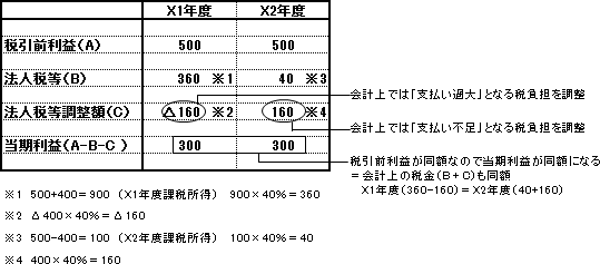 減価償却超過額(X1年度のみ)400   法定実効税率 40%