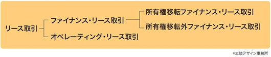 また、ファイナンス・リース取引は、リース契約上の条件により、リース物件の所有権が借り手に移転すると認められる取引を所有権移転ファイナンス・リース取引といい、それ以外の取引を所有権移転外ファイナンス・リース取引といいます。