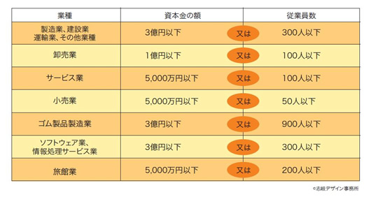 *1 中小企業基本法の第2条で定められている中小企業者と同様の定義です(自動車または航空機用タイヤおよびチューブ製造業ならびに工業用ベルト製造業を除く)。