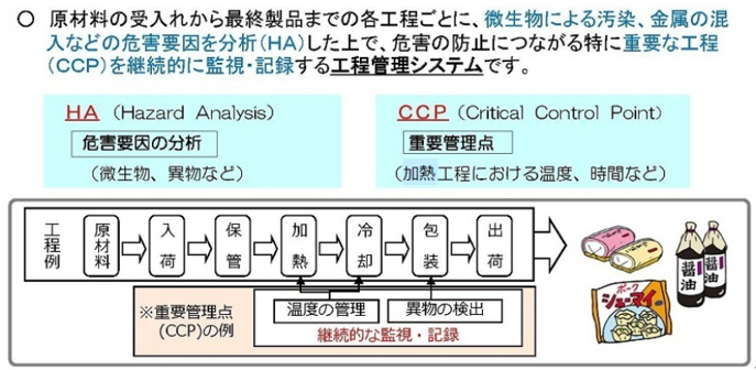HACCPは危害要因分析の実施や重要管理点の決定を伴いますのでHACCPの導入プロセスで生産管理、品質管理、安全管理に関して基準設定や確認が可能です。
