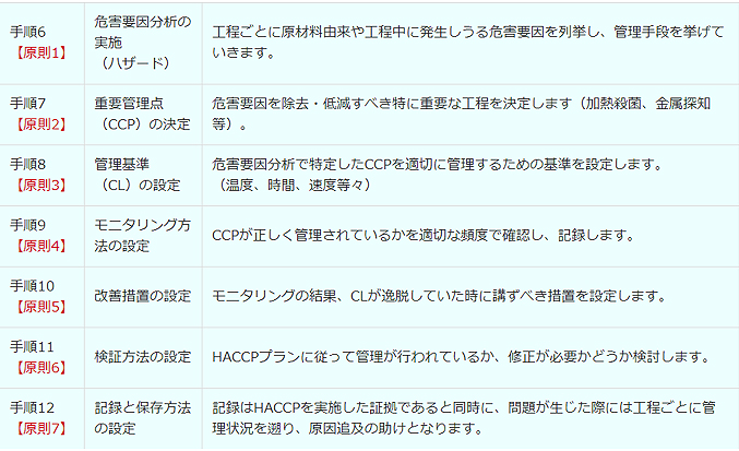 HACCPは「7原則12手順」という手順に従って導入をすすめます。