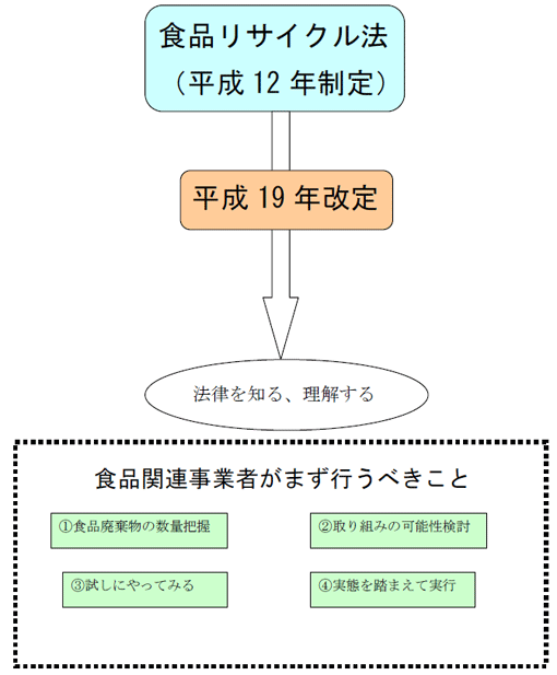 しかし、食品産業でも消費者に近い小売業・外食産業では取組みが低迷していたため、その活性化を目指して平成19年に法律改正が行われました。