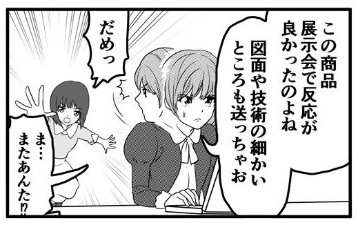 押原さんにいったいどんな過去があるんでしょうか。さて、展示会で海外のバイヤーなどから図面や技術の詳細を聞かれることがあります。コアコンピタンスの流出は海外進出のチャンスを潰してしまうどころか、海外で安価な製品を作られ市場を奪われる危険性もあります。安易な提供は避けましょう。とはいえ一定の情報を提供しなければビジネスは生まれません。海外担当者内でどれがコアコンピタンスにあたるかの認識を共有しておくことが大切です。
