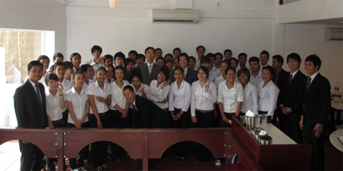 「社員は私以外に11名います。全員が新規採用です。5名が日本人で6名がカンボジア人。ほとんどが20代半ばの若い社員です。日本人社員は大手メーカー、都市銀行、大手外食企業出身と経歴はバラバラです。私が言うのもなんですが、みんな優秀ですよ」
