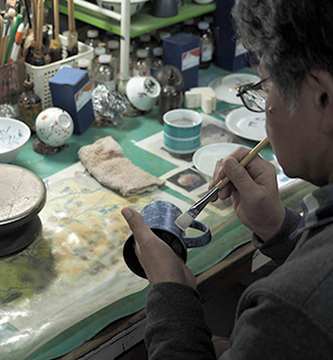 江戸時代からすでに海外へ輸出していたという有田焼。しかし近年は価格面や文化の違いなどから、輸出がうまくいっていない様子を見て、「国内で商売するしかないと思っていました」と話すのは、「有限会社金照堂」の代表取締役、金子真次さん。有田焼の卸問屋だったものの、既存の方法では売れなくなってきたことを感じ、十数年前からオリジナルの陶磁器作りに乗り出す。そこで生まれた、「富士山ペアぐい呑」が2011年に観光庁の「魅力ある日本のみやげコンテスト」の韓国賞とイギリス賞に輝いた時ですら、海外展開は考えていなかった。