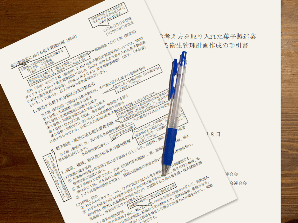 さらに、(B)「HACCPの考え方を取り入れた衛生管理」の対象となる小規模事業者の場合は、事業者団体が作成し、厚生労働省が確認する手引書を利用して、温度管理や手洗い等の手順を定め、簡便な記録を行うこととなります。つまり、原材料や製造工程の特性をふまえた手引書に沿って比較的容易に取り組めるものなのです